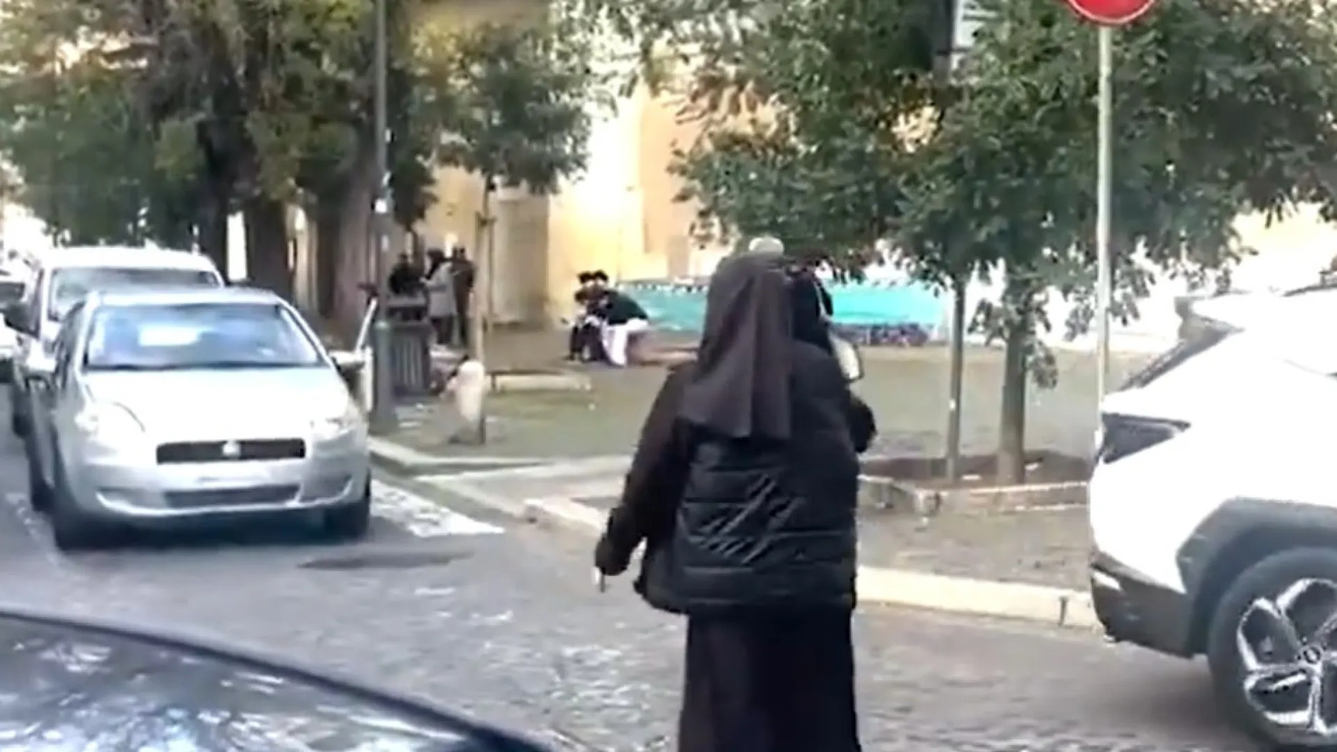 Uma freira decidiu 'vestir' a pele de um polícia sinaleiro, quando, depois de um autocarro ficar preso, numa rua em Roma, Itália, e ajudou a resolver um probl...